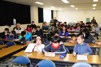 ![]() 今回も参加してくださいました河辺小学校の肥後先生と玉城先生です。今回初めて参加の池谷先生。 | ![]() 河辺小学校PTAの方々。手伝っていただきいつも助かっています。 |